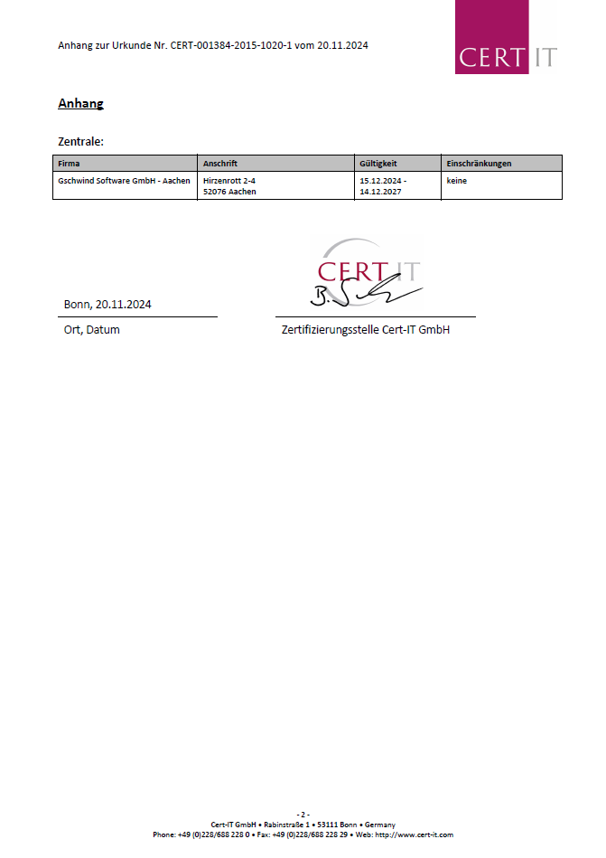 Wir freuen uns hier den Nachweis unserer erfolgreichen Zertifizierung nach DIN EN ISO 9001 präsentieren zu können. Dies ist für uns der beste Beweis, dass wir und unsere Arbeit stetig einer kontinuierlichen Verbesserung unterliegen.